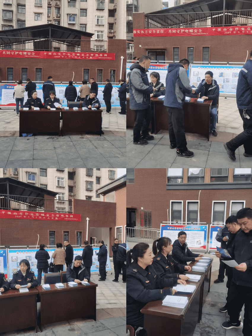 《平顶山市住宅电梯安全管理条例》(以下简称《条例》)于2025年3月1日起正式施行,标志着平顶山市住宅电梯安全管理进入新的法治化阶段。为推动该《条例》有效实施,构建电梯安全共建共治新格局,2月28日,河南省特检院平顶山分院联合平顶山市市场监督管理局在新华区平煤物供新程街小区开展《条例》宣传活动。