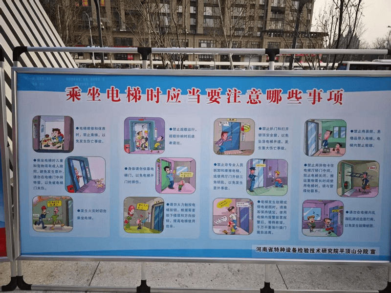 平顶山特检院职工在中骏广场借力“3·15”活动,通过现场发放《平顶山市住宅电梯安全管理条例》读本、“关爱生命 关注特种设备安全”、“安全乘梯 有你有我”宣传手册等,向前来咨询的广大群众宣传特种设备安全知识,教育引导广大群众正确乘梯、安全乘梯,认识和关注特种设备安全。对群众提出的突发情况,如何开展电梯自救和应急救援,我院职工进行了现场讲解和示范,提高了群众自我防范意识和自我保护能力。本次活动共发放《平顶山市住宅电梯安全管理条例》读本80余册、特种设备安全知识宣传册100余份、接受群众咨询30余人次。